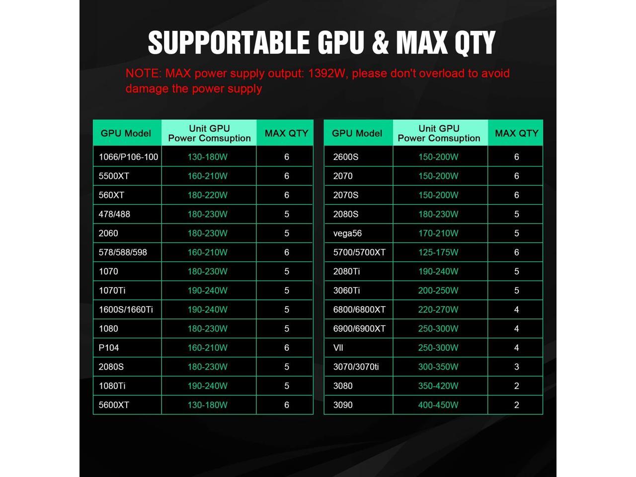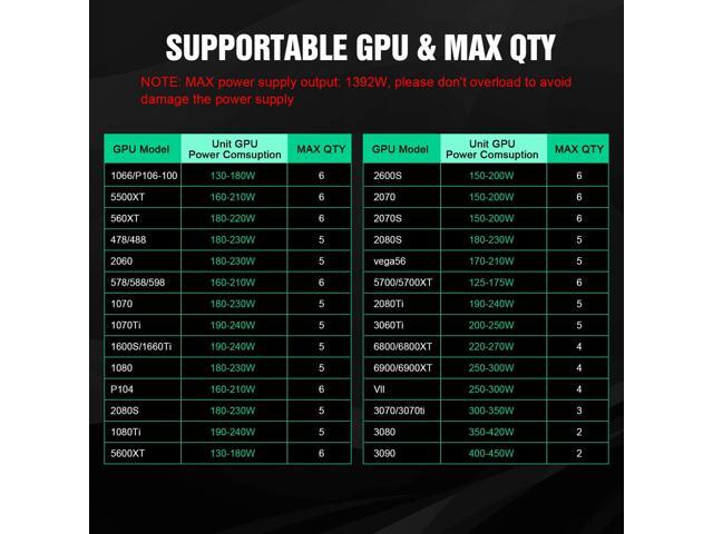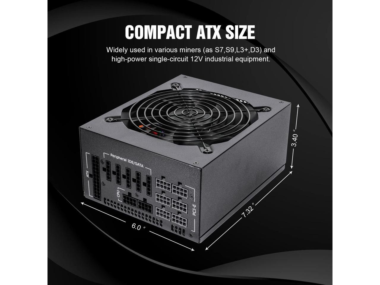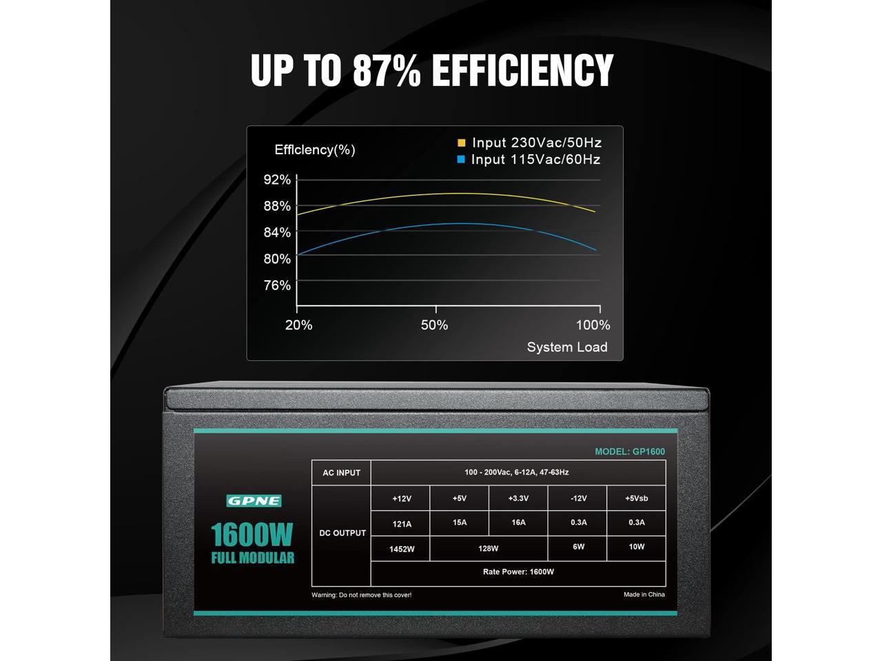 GPNE 1600W ATX Power Supply, Fully Modular PSU for Gaming PC Case, 6 x 6+2 Pin PCIE ports, Lower Noise 140mm Double Ball Bearing Fan