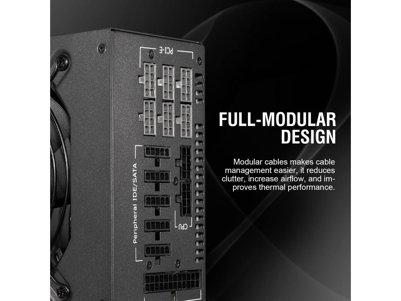 - Full Modular Design: modular cables make cable management easier, it effectively reduces clutter, increases airflow and improves thermal performance.