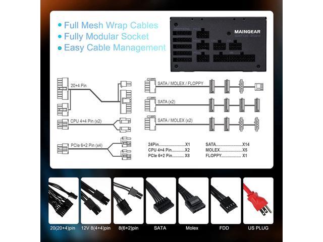 MAINGEAR Ignition 850w 80 Plus Gold ATX Fully Modular Power Supply,Crossfire Gaming PC Switching Power Supply