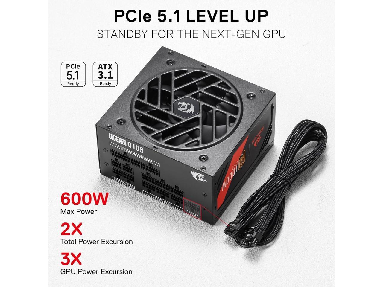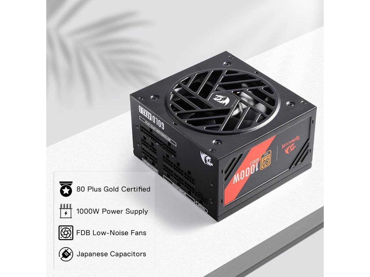 Redragon RGMS-1000W PRO 80+ Gold 1000 Watt Power Supply w/Upgraded ATX 3.1 & PCIe 5.1 Fully Modular, Compact 150mm Size, Smart ECO Low Noise Fan, 100% Japanese Capacitors, Full Mod Cables