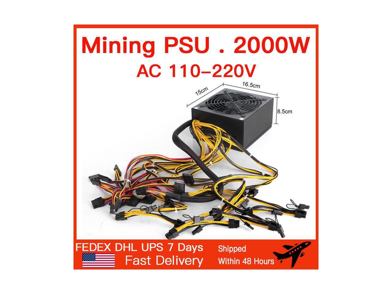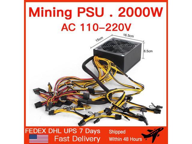 2000W ATX Mining Power Supply Bold 12AWG line Can connect 8GPU Auto-Thermally Controlled Fan for Bitcoin ETH Miner PSU