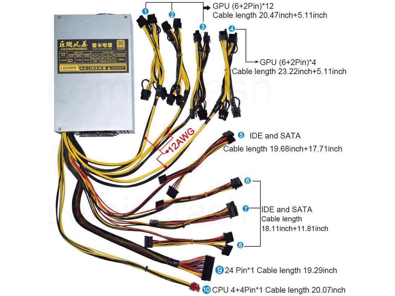 - 8*12AWG wires provide sufficient materials for 8 graphics card.