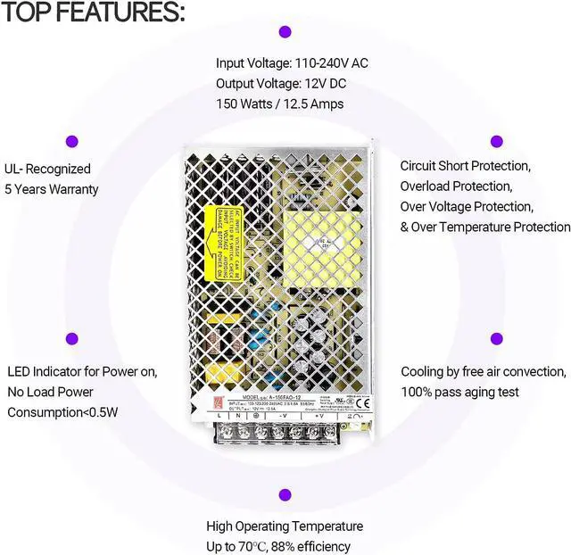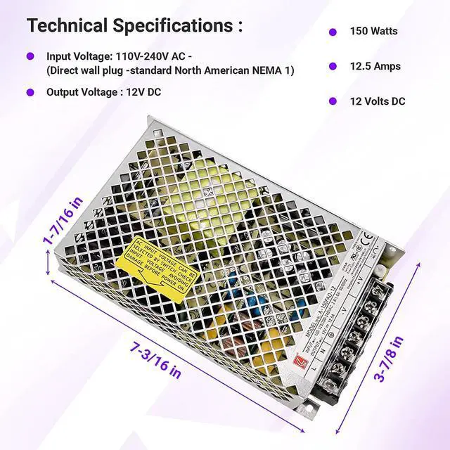Our UL- Recognized 12V DC Switching Power Converter provides the power you need to light up your LED light strips or other low voltage devices like CCTV camera, 3D printer, wireless router, LCD monitor, by converting your 110 or 240V AC power to 12V DC power.?