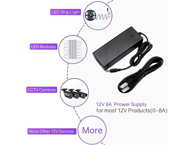 - RATED FOR 96 WATTS / 8A: Enough power to run 72 feet of 600 LED 3528 LED strip; Compatible with 12-volt single color PWM dimmers and RGB controllers