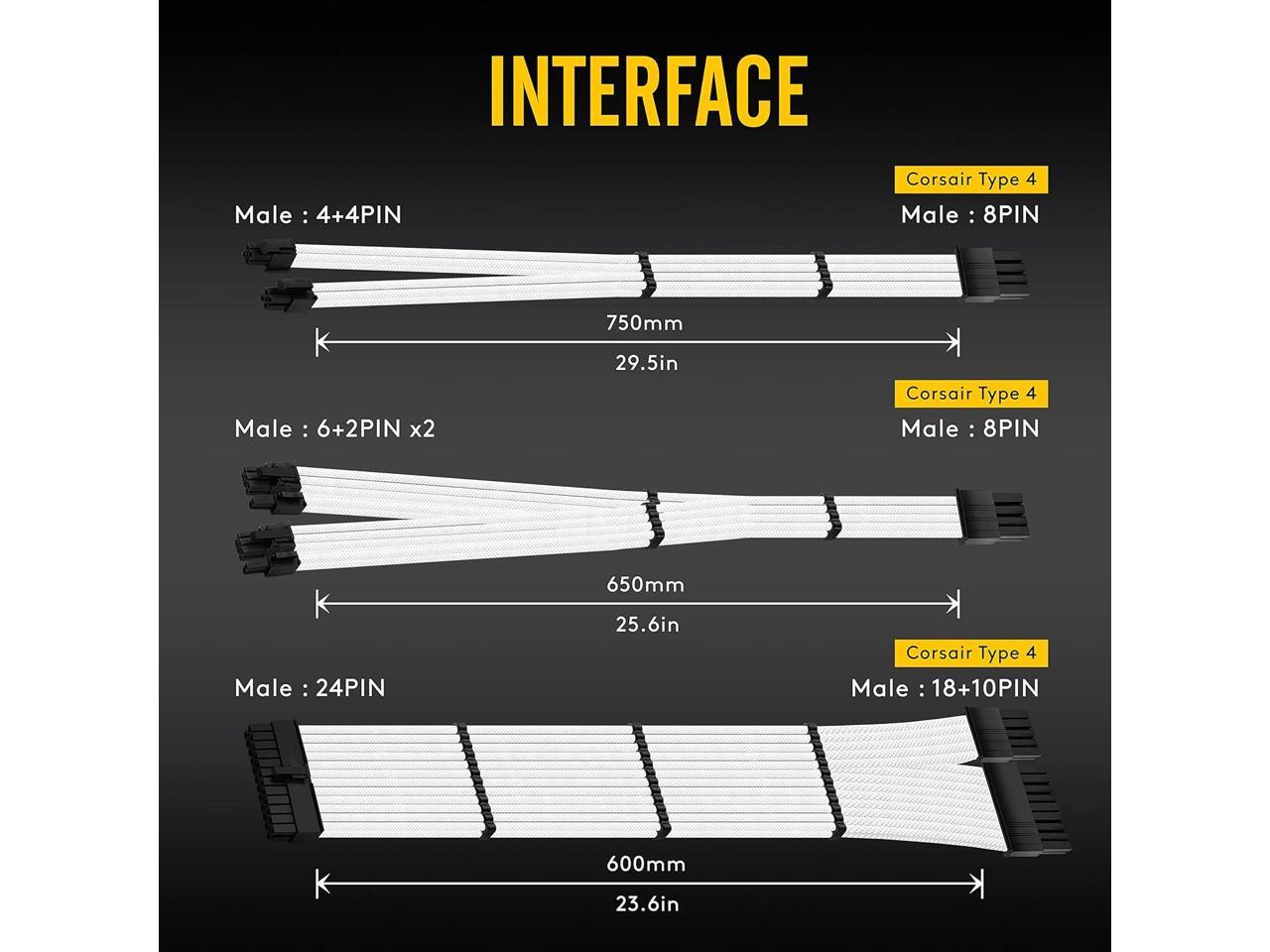EZDIY-FAB Premium PSU Replacement Soft Nylon Sleeved Cables Kit for Corsair Type 4 RM Black Label RMi/RMX-White