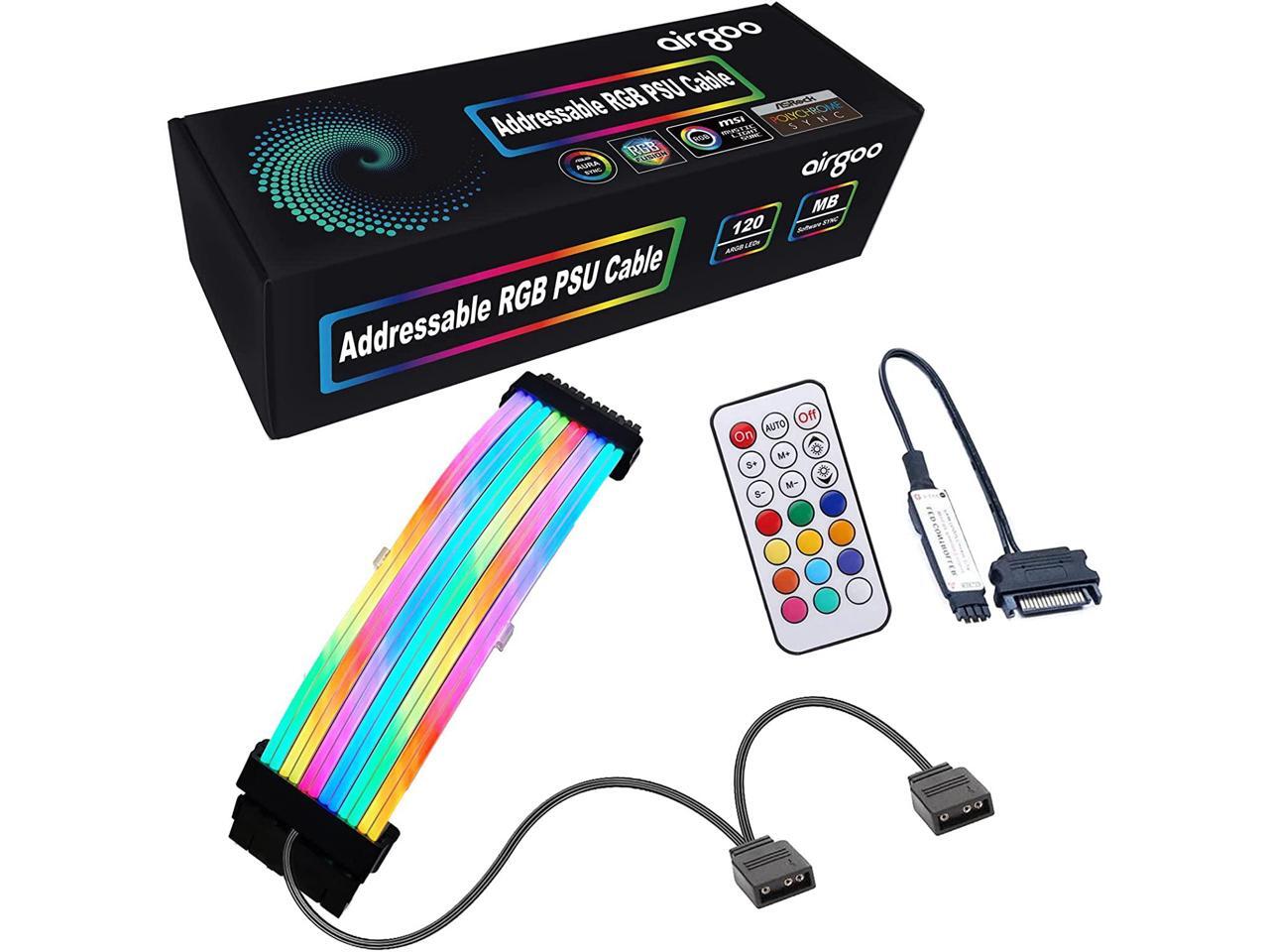 - New Upgraded With Diffused LightingsAirgoo New Version 24-pin ATX Addressable RGB PSU extension cable with full color range, Neon housing creates a smooth and stable illumination effect. Total 120 LEDs, super bright for modding your pc case which creat amazing RGB sync effects.