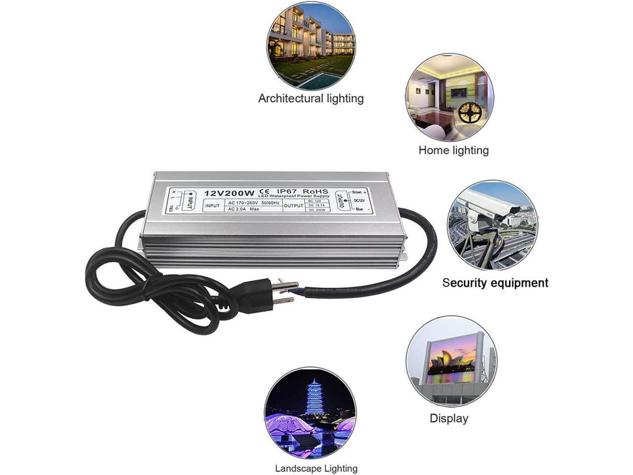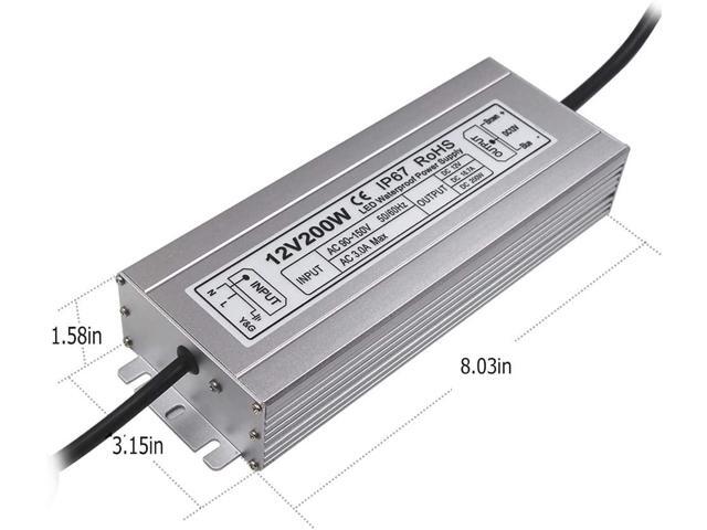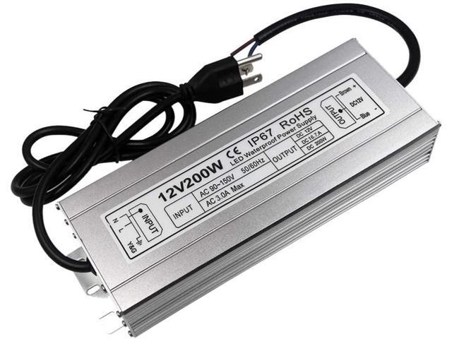 LED Power Supply 200W High-powerTransformer Waterproof IP67 12V DC Driver Adapter for Outdoor Use