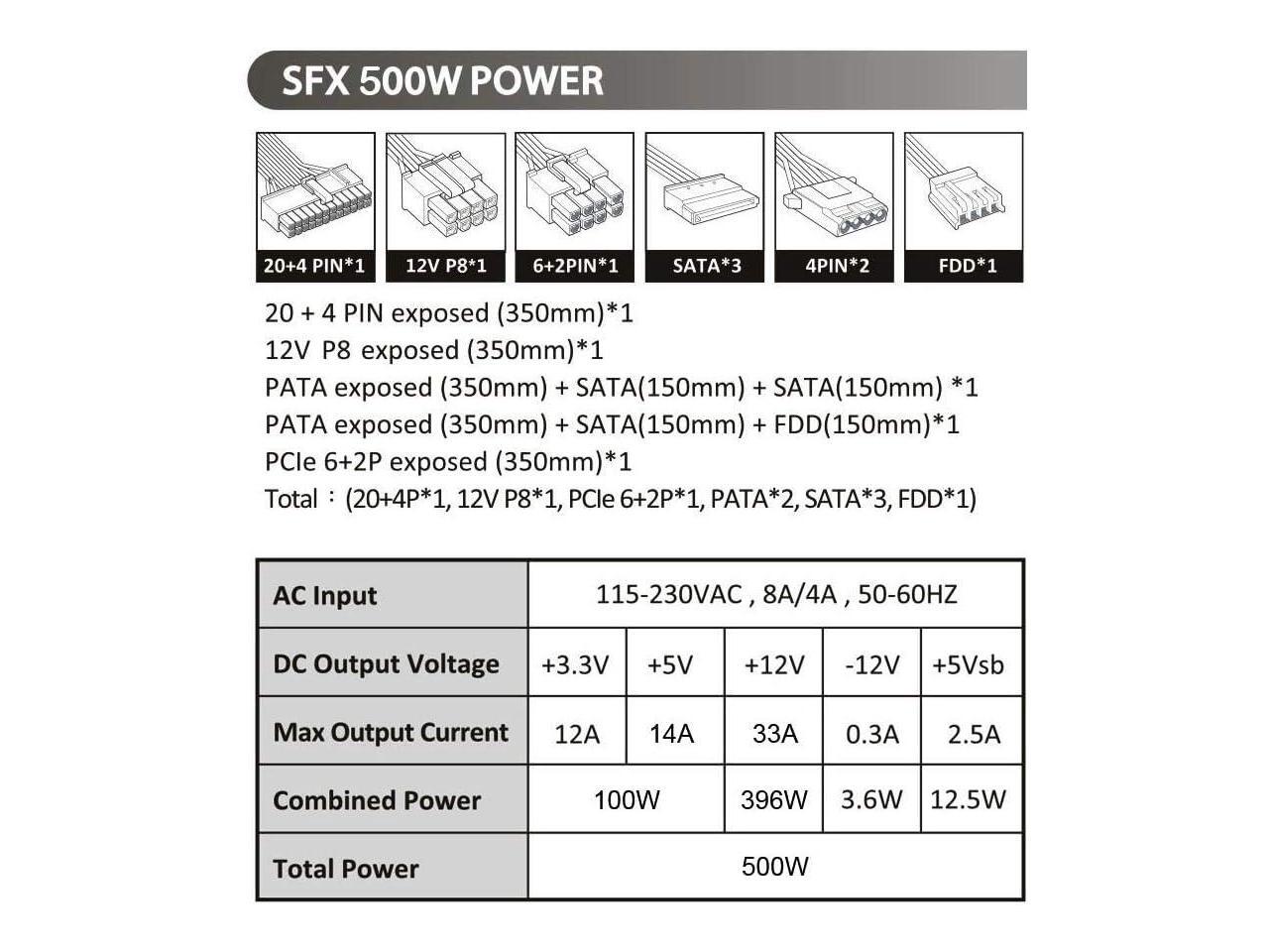 Apevia SFX-AP500W Mini ITX Solution/Micro ATX/SFX 500W Power Supply