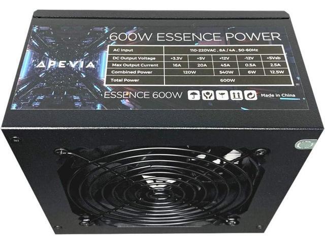 - Apevia 600W Essence ATX Semi-Modular Gaming Power Supply with black sandblasted casing