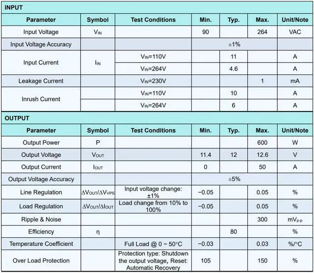 ALRS12V50AT is a highly efficient 600W single-output enclosed power supply with a 41mm low profile design.