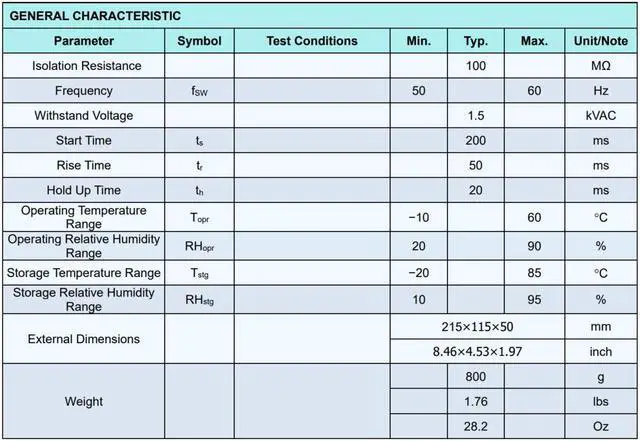 Equipped with a built-in long-life fan, this power supply can operate effectively at full load under temperatures ranging from 10°C to 60°C.