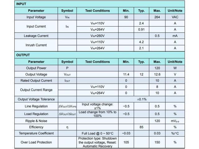 Analog Technologies ALRS12V10AT 120W Switching Power Supply Switch AC 110V/220V to DC 12V 10A Switching Converter for 3D Printer, Computer, Car Stereos, LED Strip