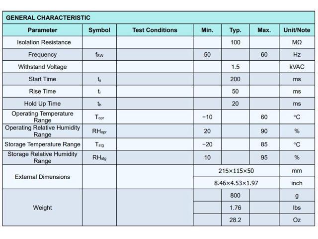 - Withstand 300VAC Surge Input for 5s.