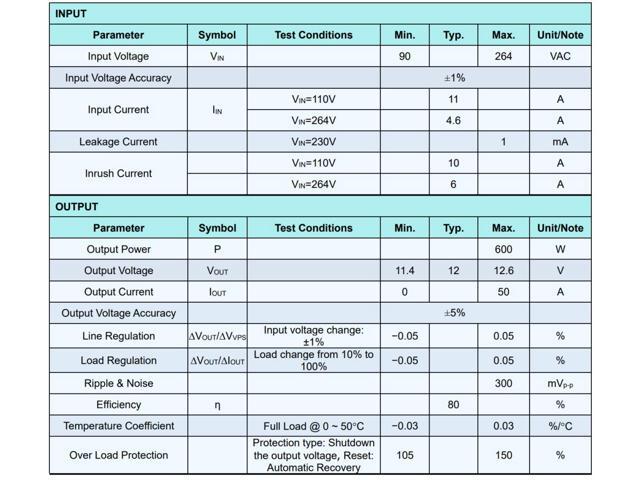 - Input Voltage Range: 90V ~ 264VAC;