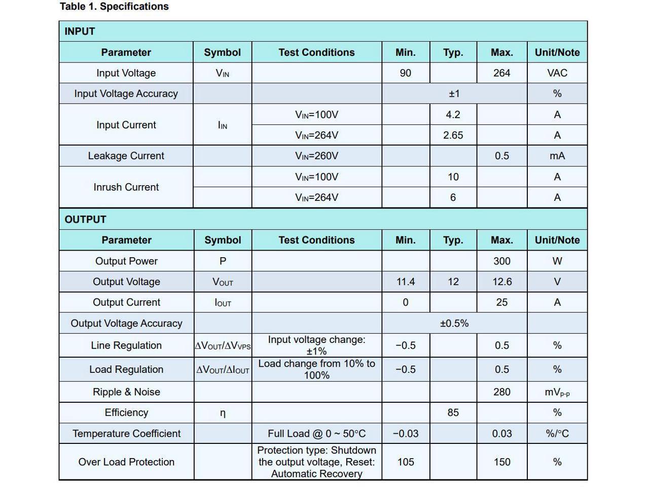 Withstand 300VAC Surge Input for 5s.