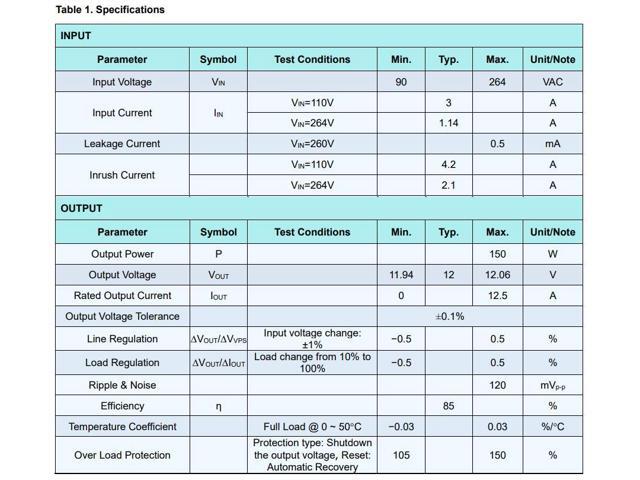 Analog Technologies ALRS12V12R5AT Versatile 150W Switching Power Supply Converts 110VAC/220VAC to 12VDC 12.5A for 3D Printers, Computers, and LED Lighting