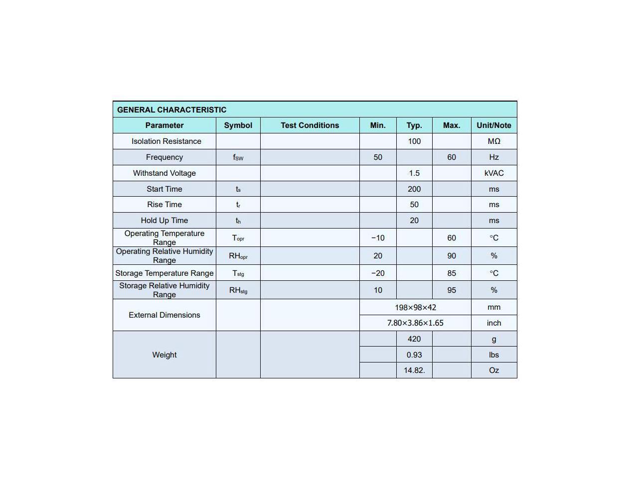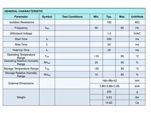 - Withstand 300VAC Surge Input for 5s.