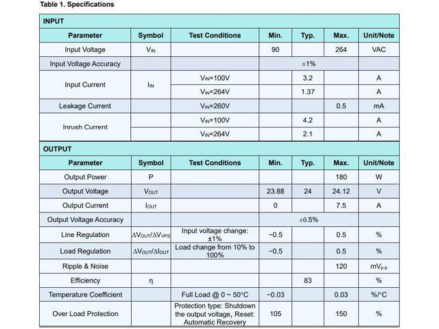 - Input Voltage Range: 90V ~ 264VAC;