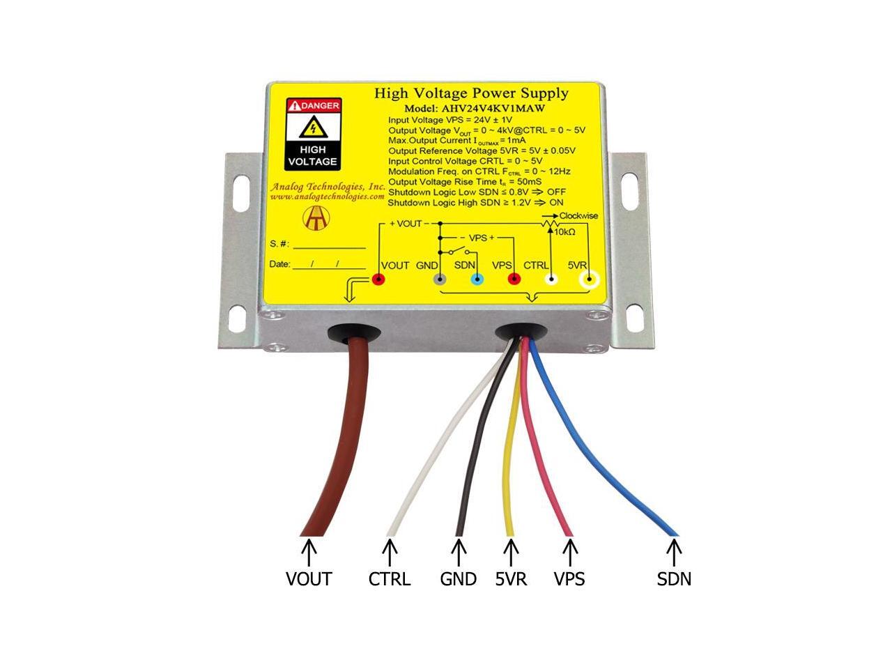 Analog Technologies Compact High Voltage Power Supply 0 to 4kV Output Voltage 1mA Output Current 24V Input DC DC Converter AHV24V4KV1MAW