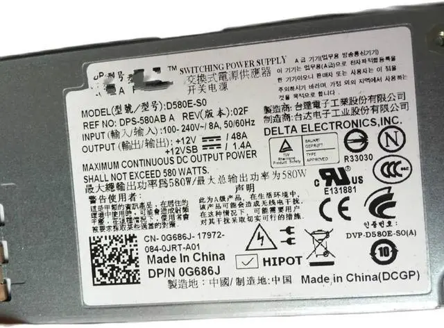 T410 D580E-S0 Server PowerSupply F5XMD H371J G686J 580W A580E-S0