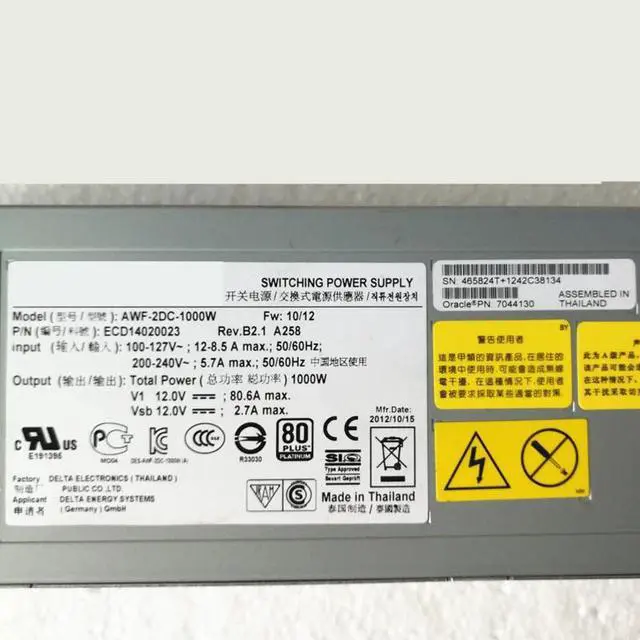 KHACHIMO For Sun Oracle X3-2L X4-2L 1000W Switching Power Supply 7044130 7102762 AWF-2DC-1000W