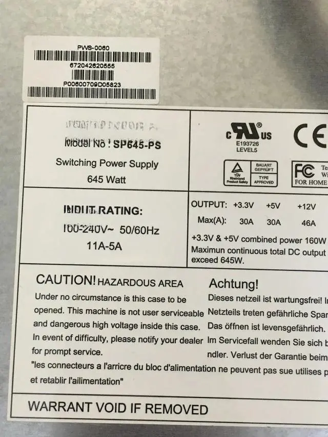 For SP645-PS 645W Workstation Server Power Supply SP650-RP