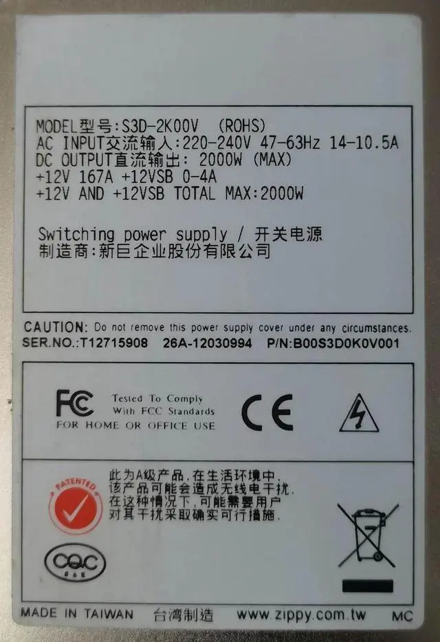 For S3D-2K00V 2000W S3D-2K00V Power Supply