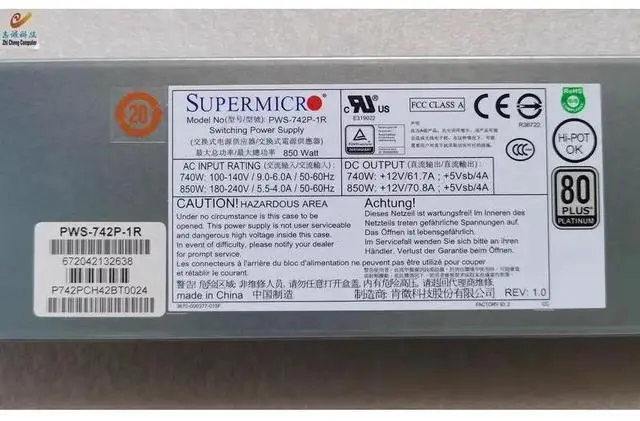 For PWS-742P-1R 850W Server Redundant Power Supply