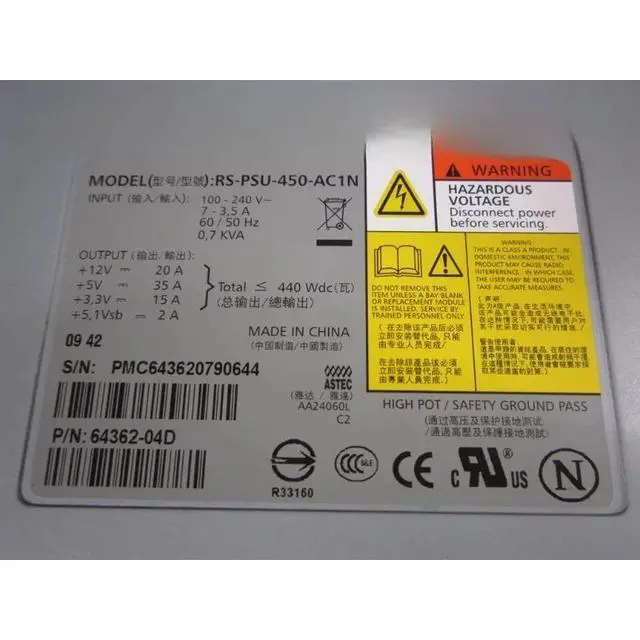 For PS4000 PS6000 Power Supply RS-PSU-450-AC1N 64362-04D