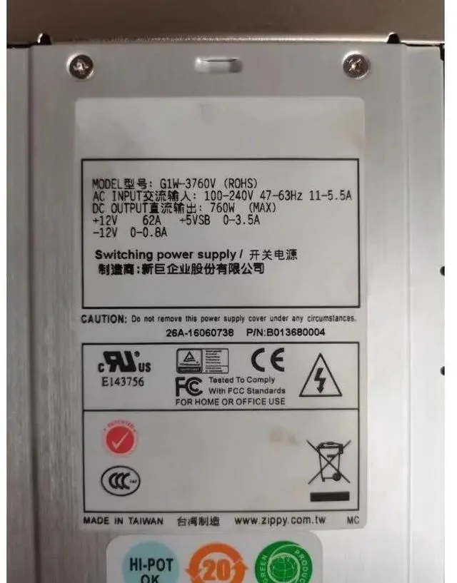 For G1W-3760V 760W 2U Server Redundant Power Supply Module