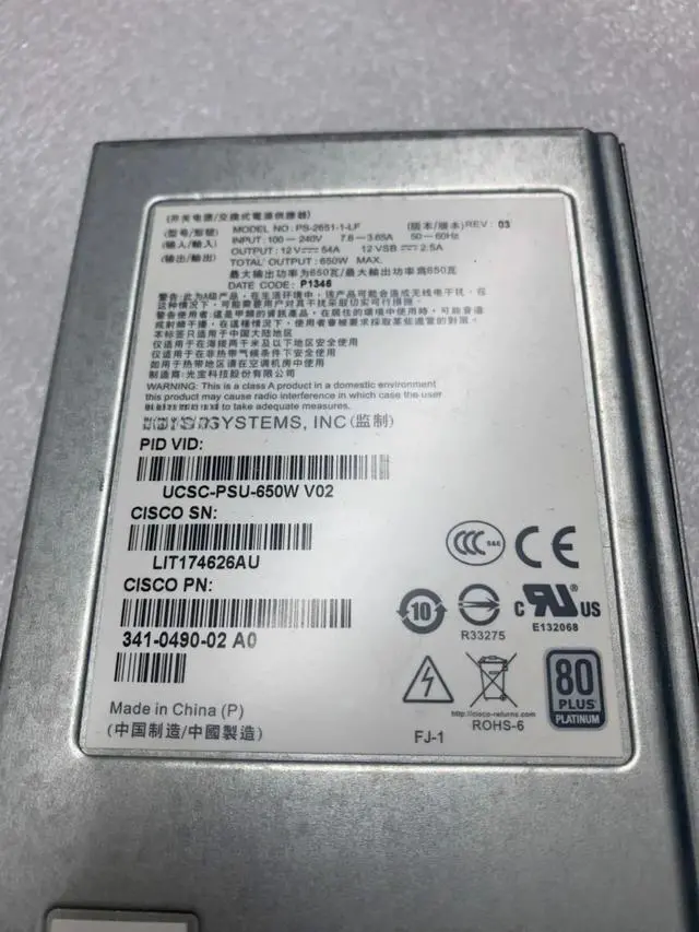 For C240/C220 M3 Power Supply UCSC-PUS-650W V02 PS - 2651-1 - LF