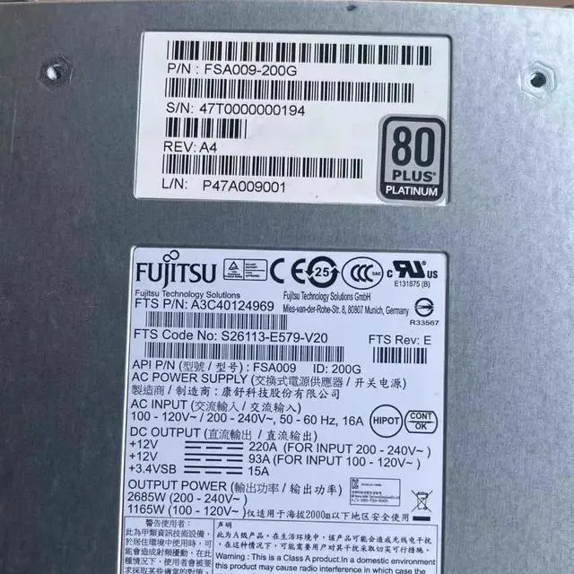 For BX900S1 Power Supply AA25370L FSA009-200G 2685W A3C40137463