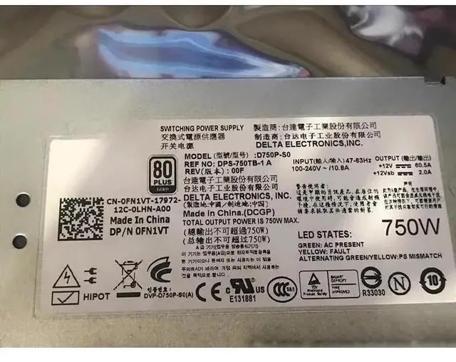 For R510 R910 T710 Server 750W Power Supply Z750P-00 F613N FN1VT