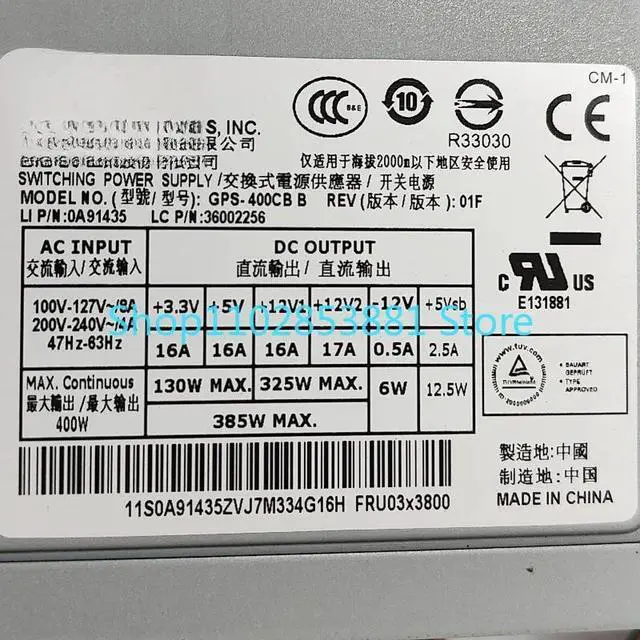 1PCS for TS430 TS530 Delta GPS-400CB B 400W ATX Power Supply REV 36002256 0A91435