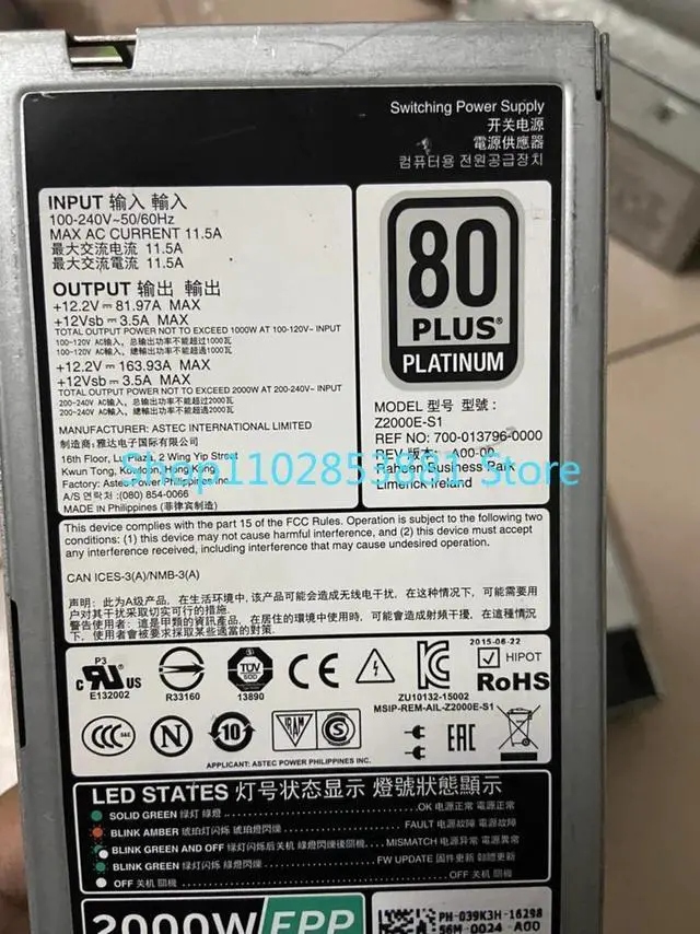 For T640 T630 R930 2000W server power supply J5WMG 39K3H