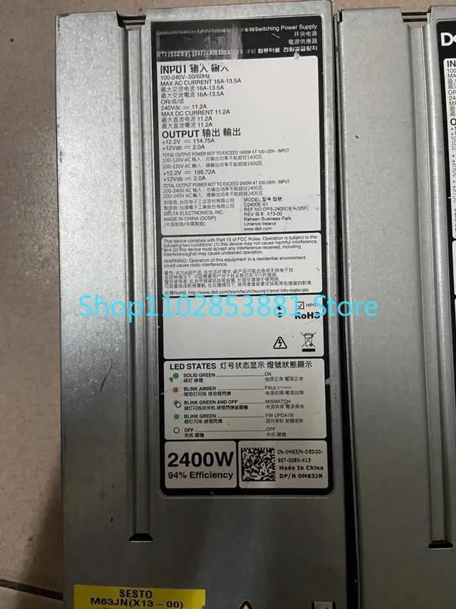 For R7525 R7625 Rack Server, Power Supply 2400W M63JN