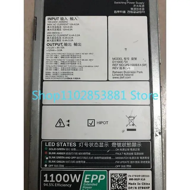 1PCS for R730 R830 T630 R530 D1100E-S4 T94HP Server Power Supply
