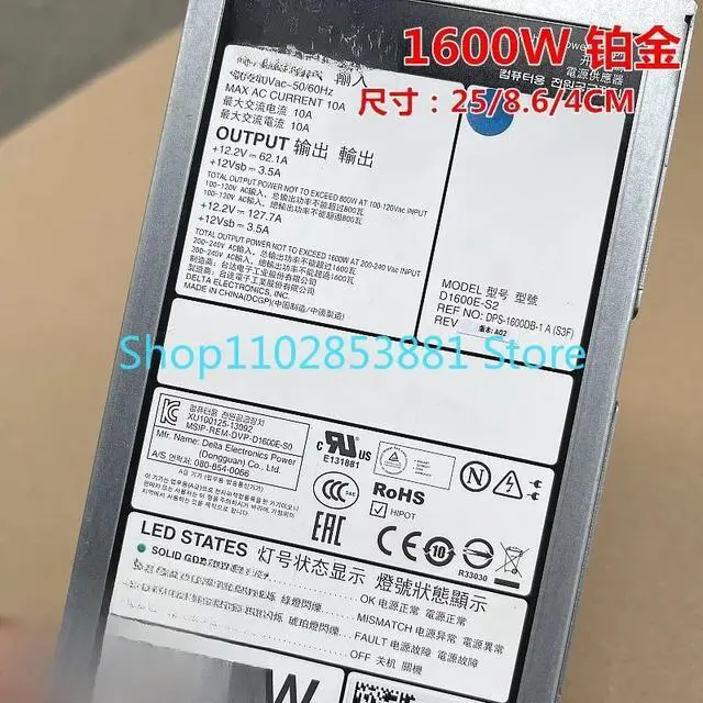 1PCS for 1600W D1600E-S2 DPS-1600DB-1 A (S3F) Small Size Server Power Supply