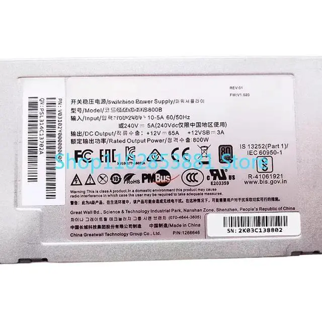 1PCS for SA5212 M4 M5 800W Server Power Supply CRPS800B CSU800AP3100