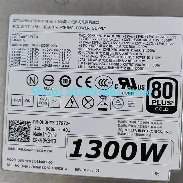 1pcs for T7610 T7600 Workstation Power Supply 0H3HY3 D1300EF-00 DPS-1300DB A