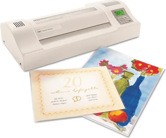 H600 Pro pouch laminator uses four heated rollers to provide professional lamination results. Easy-to-use keypad control panel with LCD readout. Accepts documents up to 13" wide. Laminates pouches between 1.5 and 10 mils in thickness. Laminator Supply Type: Hot; Use Rating: Frequent; Electric/Manual/Battery: Electric; Number of Rollers: 4.