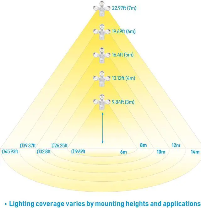 The 100° beam Angle, 350° horizontal and 150° vertical direction can be adjusted to ensure greater coverage and light up the night. Despite its powerful 3700lm output, this security light is remarkably energy-efficient, with a wattage of only 37.5W, equivalent to a 300W bulb. Not only will you be saving money on your energy bill, but you'll also be doing your part for the environment.