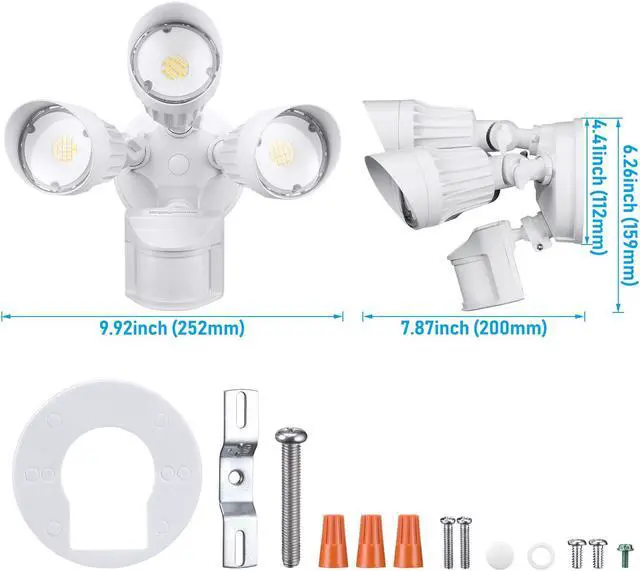 Made of durable aluminum with a life of 30, 000 hours, this three-head safety lamp is durable. In addition, with a wet position IP rating and operating temperature range of -4°F to 122°F, it can withstand even the harshest outdoor conditions.