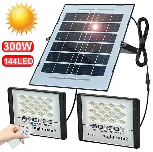 Strong Brightness Solar Flood Light: 144pcs, 6500k high brightness LED beads with 16.4ft long electric wire. The two LED lights can cover an illuminated area of up to 800 square feet. Install in anywhere you want, enjoy the green power and save your electronic power.