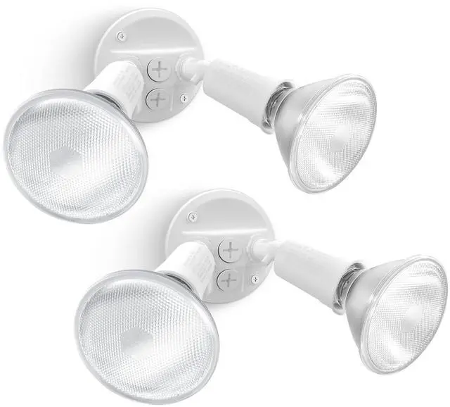 ADJUSTABLE DUAL HEADSTool-free adjustable heads on the floodlight fixture offer rotation up/down 180° and side to side 360°, allowing for light to be focused in two directions. The twin par holder provides outdoor, residential, and light commercial areas with focused illumination, safety and security