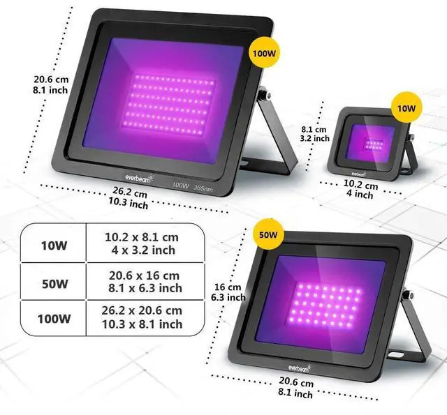 ![]() Everbeam UV flood light 395NM 10W | ![]() Everbeam UV flood light 395NM 50W | ![]() Everbeam UV flood light 365NM 50W | ![]() Everbeam UV flood light 365NM 100W | |