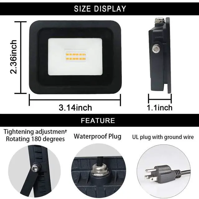 MIWAT Plug in Floodlight is a broad-beamed, high-intensity artificial light. They are often used to illuminate outdoor playing fields while an outdoor sports event is being held during low-light conditions. More focused kinds are often used as a stage lighting instrument in live performances such as concerts and plays. It is greatly suitable for garden, patio, yard, home gutter, billboard, landscape, park, rooftops, gymnasiums, buildings, roads, streets, squares, factories, street, pathway, soccer field, public places, playground, etc.