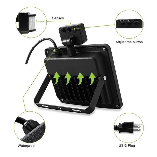 1 * 10W outdoor motion sensor warm white led floodlights, 39.37 inch power cord