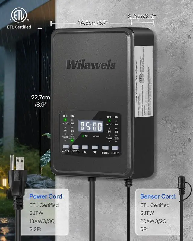 Low-Voltage Transformer with Photocell Sensor: The 200W ETL-certified low voltage transformer converts 120V AC to a safe 12/14V AC for LED and halogen landscape lighting. A detachable and replaceable photocell sensor with a 6-foot sensor cord ensures easy installation and flexible outdoor lighting