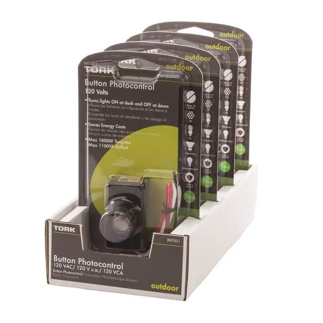 Industries, LLC TORK RKP301 Outdoor 120-Volt Button Photocontrol - Controls Lighting Dusk to Dawn for Lamp Posts and Lighting Fixtures- Compatible with Incandescent/Compact Fluorescent/Halogen/LED
